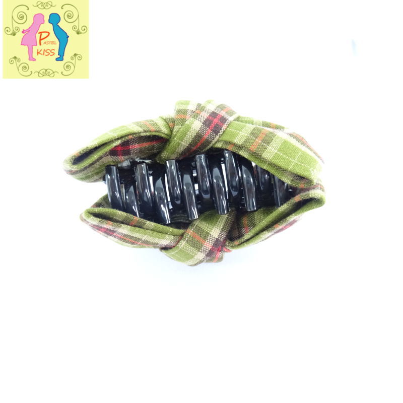 チェック柄のリボンヘアクリップ。