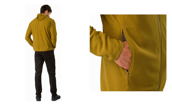 使い勝手の良い軽量のマイクロフリース フーディーはミッドレイヤー、または単体でも使え、涼しい天候で活躍します。