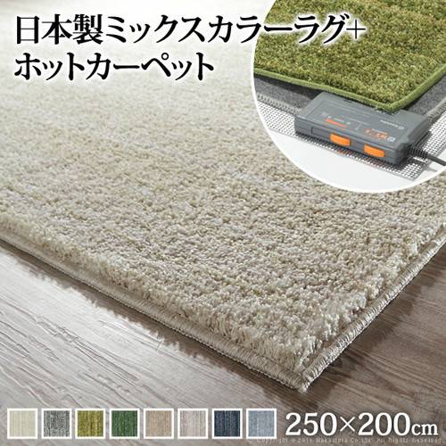 【送料無料】 ラグ カーペット 3畳 250x200cm +ホットカーペット 本体セット 長方形 三畳 ホットカーペット カバー 洗える ミックスカラーホットカーペット ルーナ 北欧 モダン シンプル 無地 ミックスシャギー 滑り止め 防ダニ 電気カーペット あったか 絨毯 じゅうたん