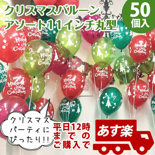 あす楽12時! 【ゴム風船】ホリージョリークリスマス アソート11インチ丸型50個入り/袋【PIN40562】